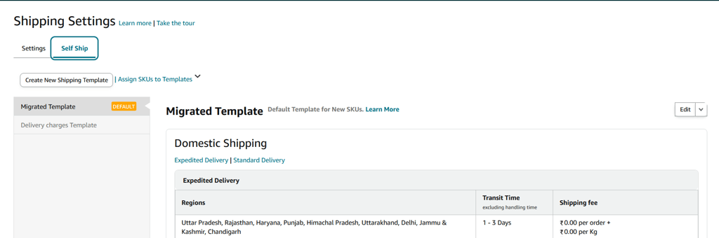 Once the self-ship mode is approved, assign the newly created shipping template to the listings you plan to fulfill under self-ship mode.
